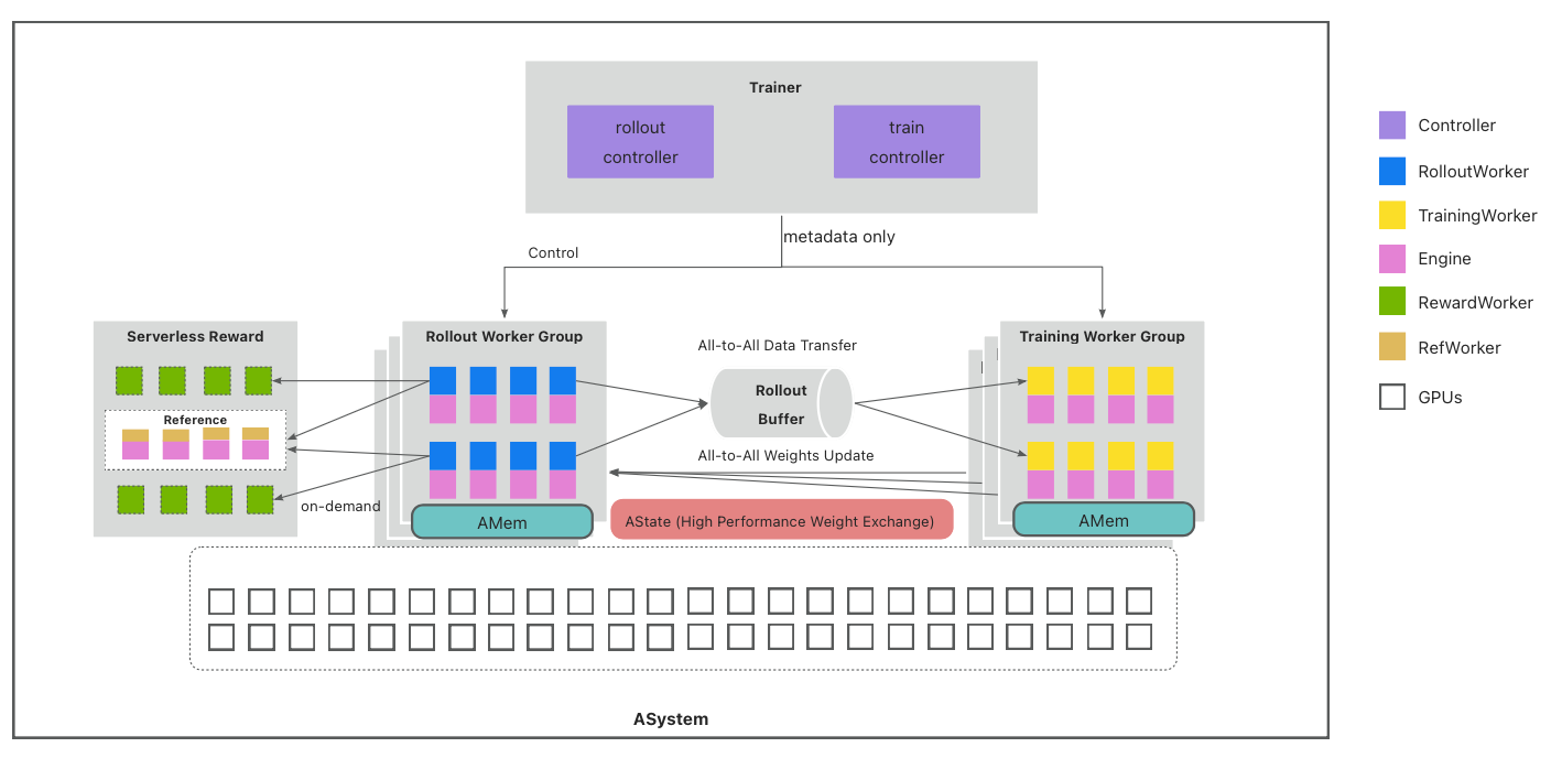 AReaL Agentic RL 的架构设计建立在两个核心原则之上: