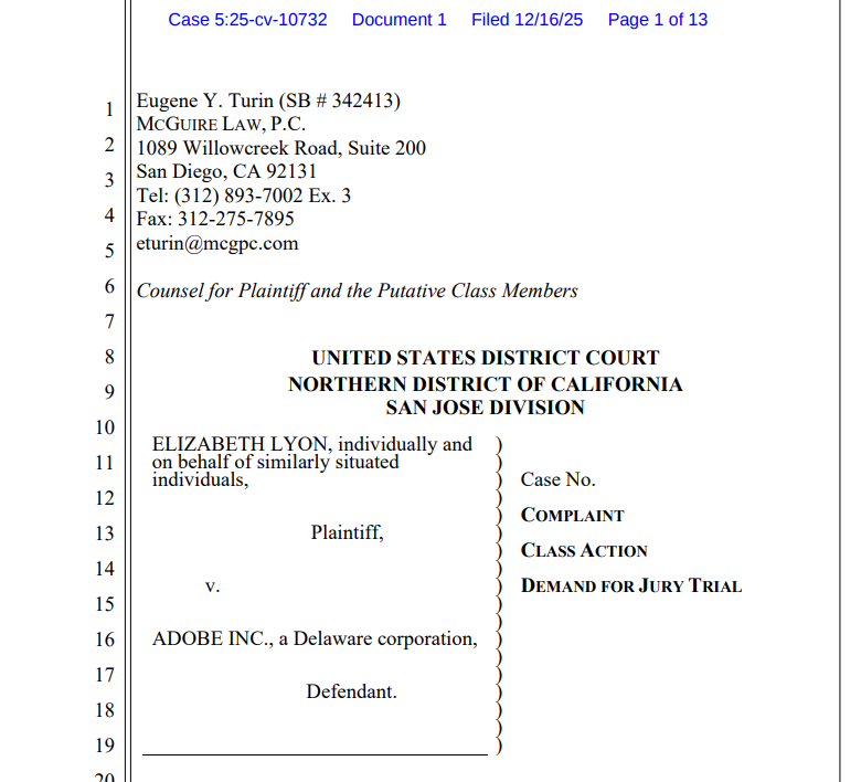 俄勒冈州作家伊丽莎白·莱昂(Elizabeth Lyon)对Adobe提起集体诉讼,指控其在练习名为 SlimLM 的小型说话模型时,应用了包含其盗版作品在内的不法数据集。