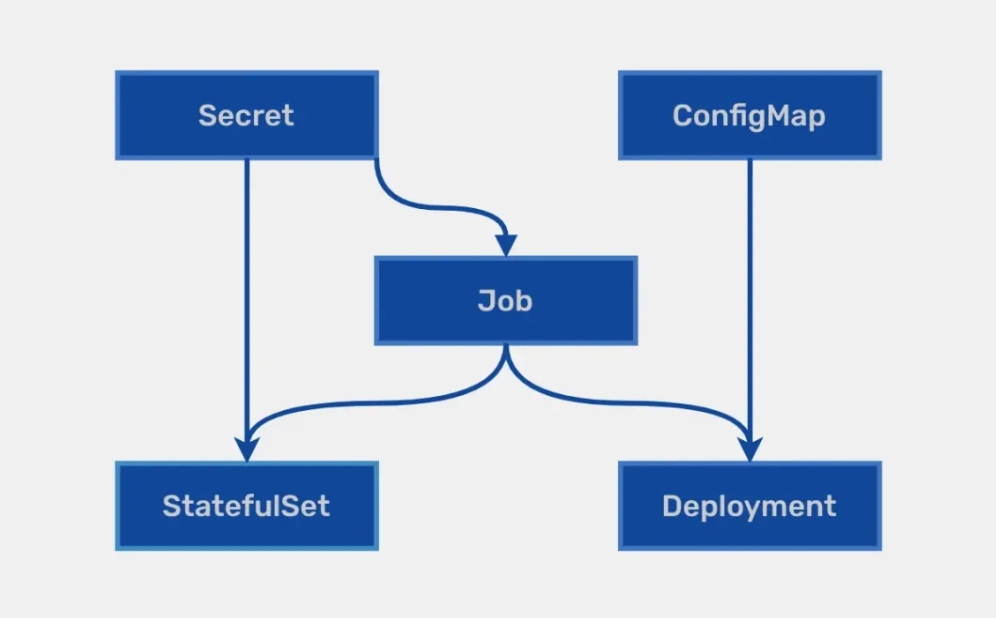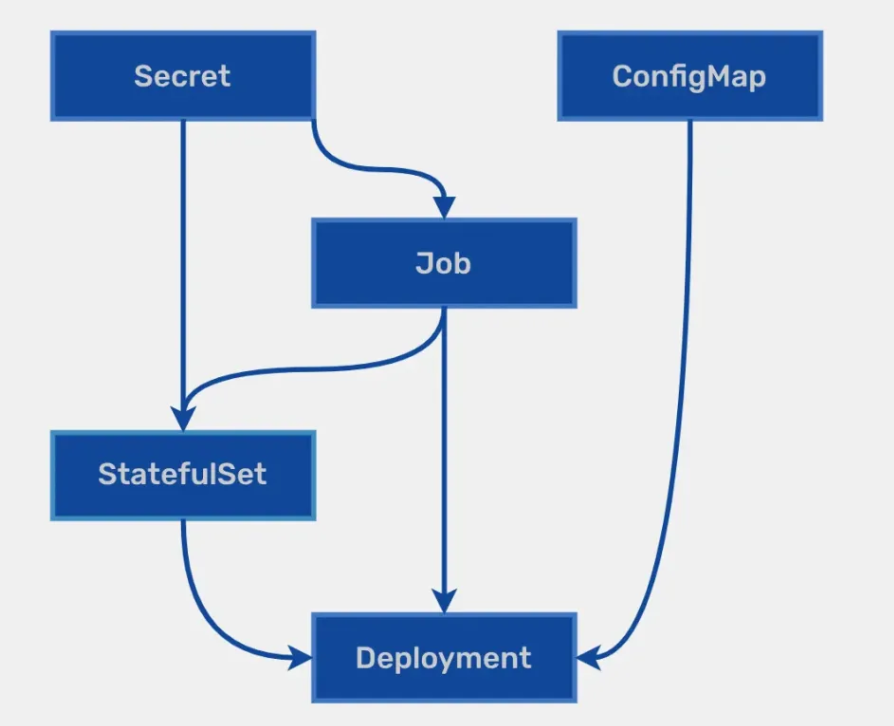 表示 backend Deployment 只有在 postgres StatefulSet 创建且就绪后才创建或更新。